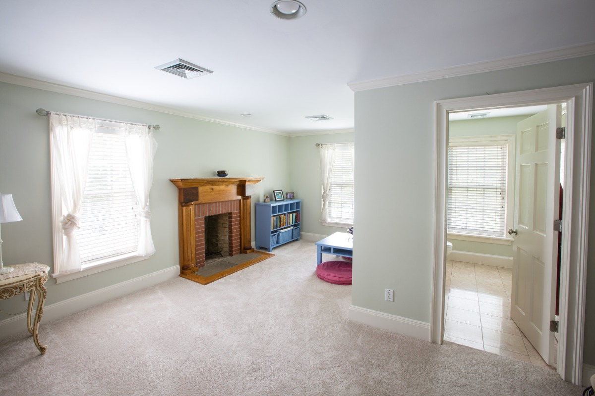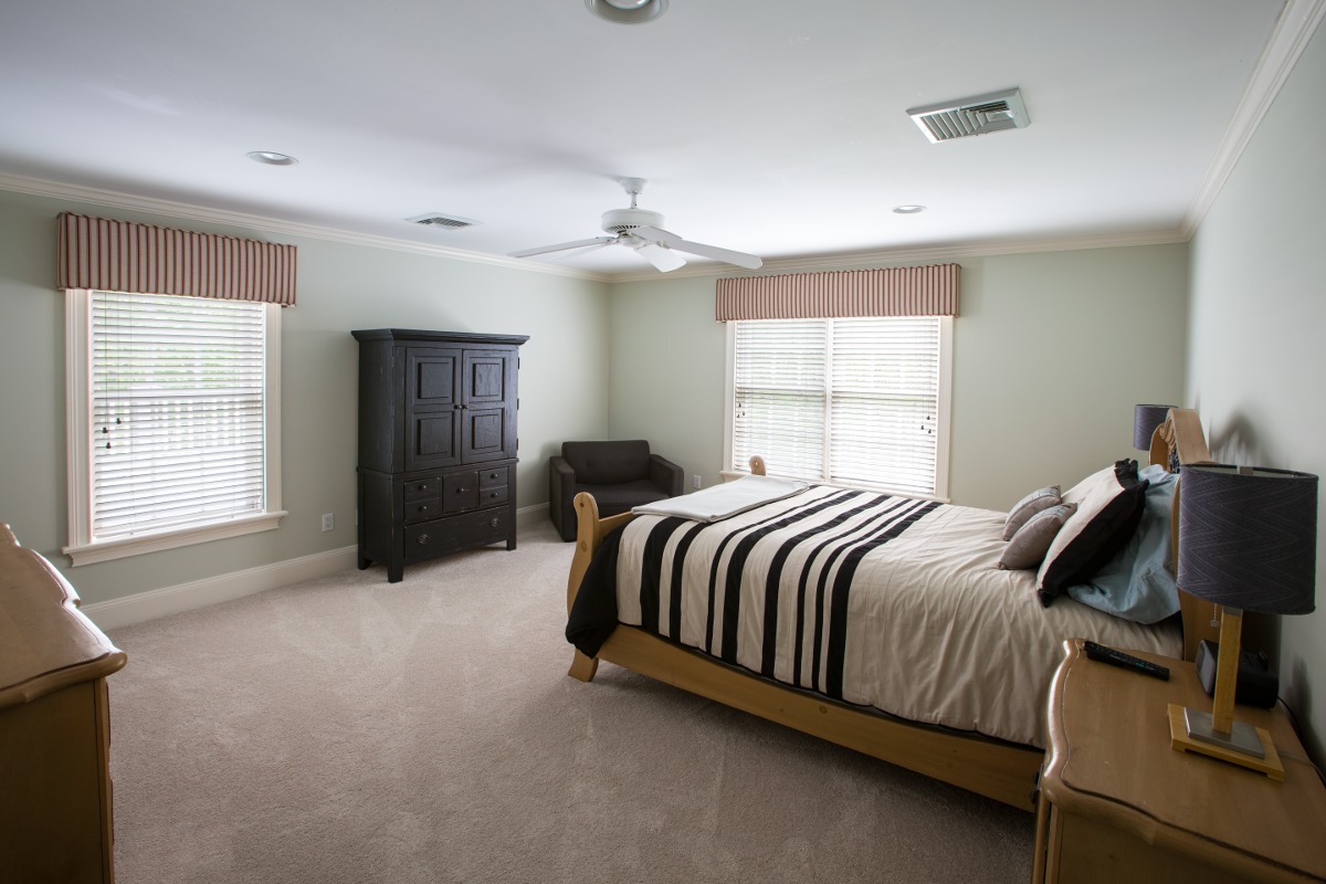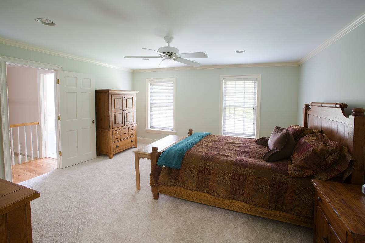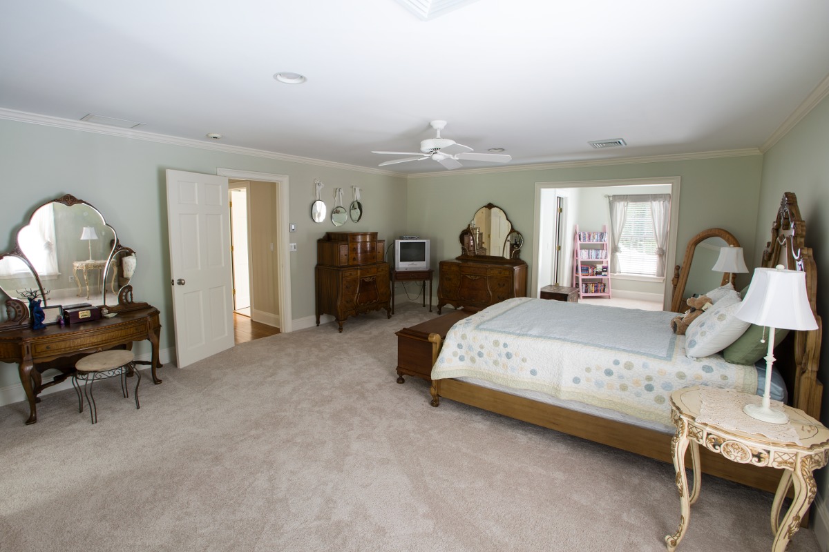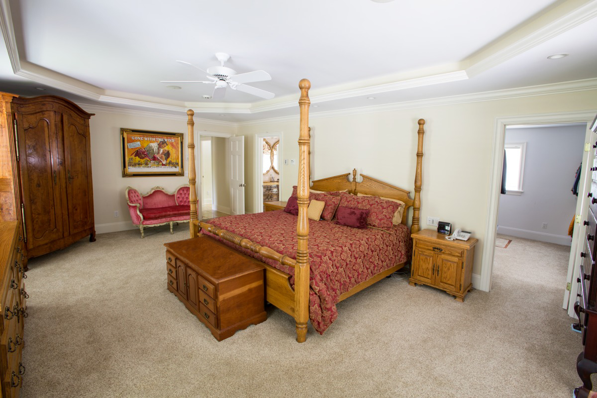 This was the original Master Bedroom Suite for the home. The central part of the room measures 18' by 16' that does not include 2 other areas of the room. Wall to wall carpeting, molding details, LED recessed lighting and a Casablana paddle fan complete this area.